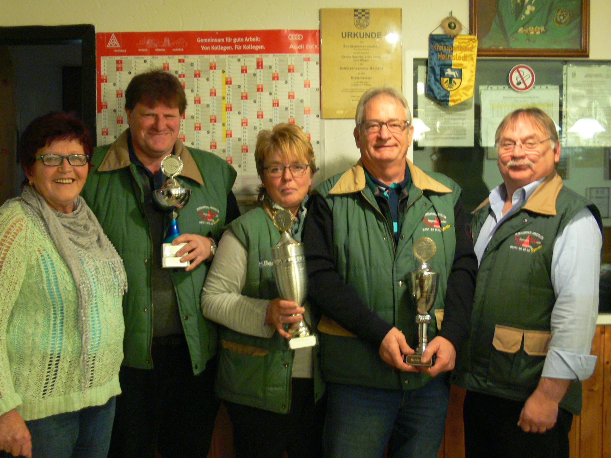 Die Pokale überreichten die Schießsportleiter Peter Schulz und Rainer Jasper an die glücklichen Gewinner. Im Anschluss saßen alle noch bei gutem Essen und einem Glas Wein oder Bier gemütlich beisammen.