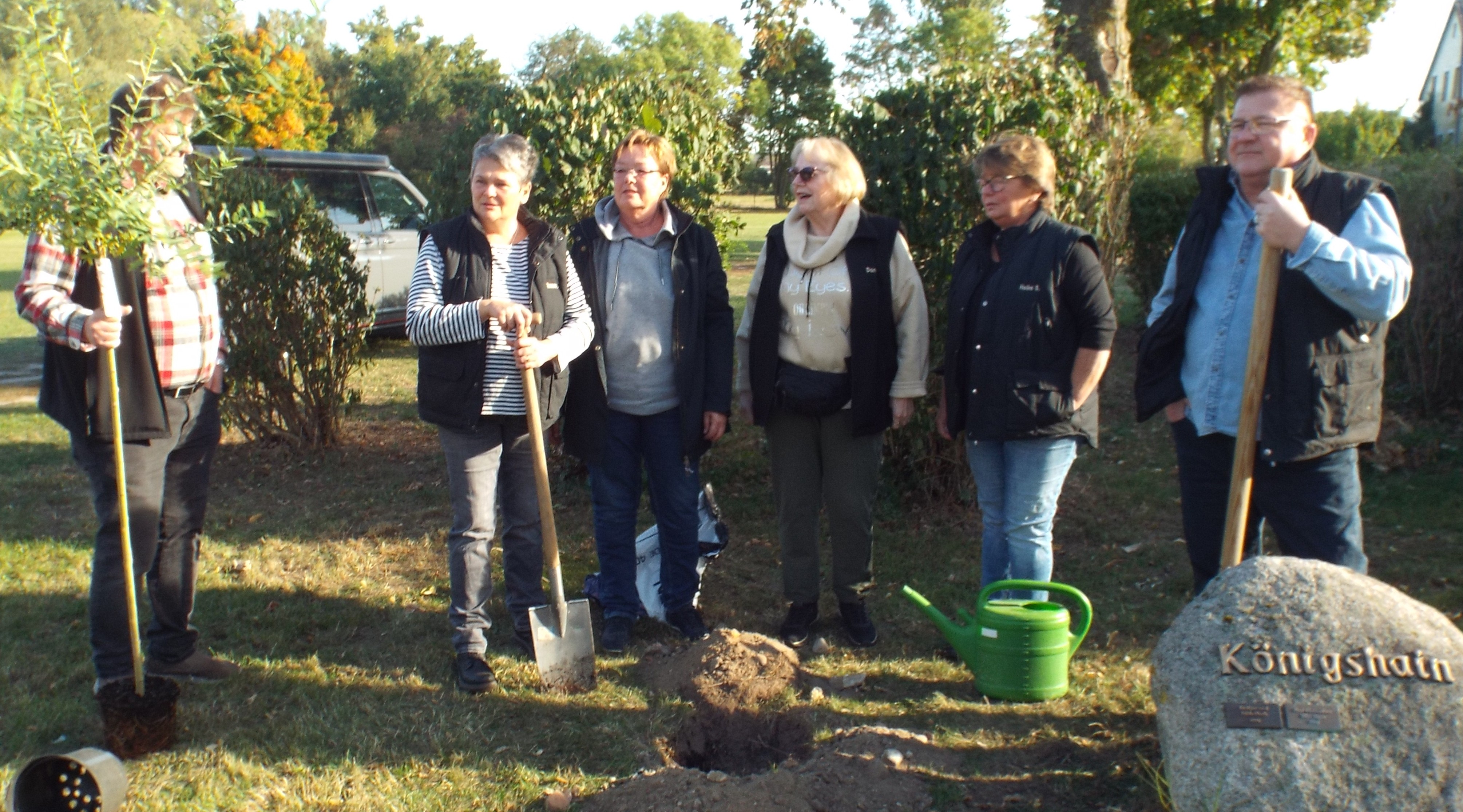 Und die wurde tags darauf im Beisein (und mit tatkräftigem Schaufel- und Spaten-Einsatz) etlicher Mitglieder gepflanzt und begossen.